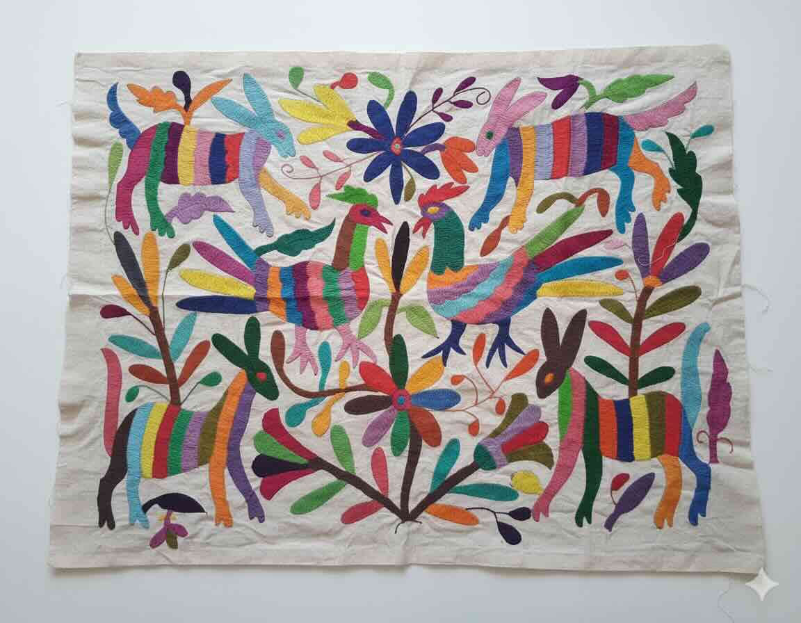 Hermosas piezas bordada a mano por artesanos Otomies, puedes usarla como mantel o para enmarcarlo como una bella pieza decorativa.